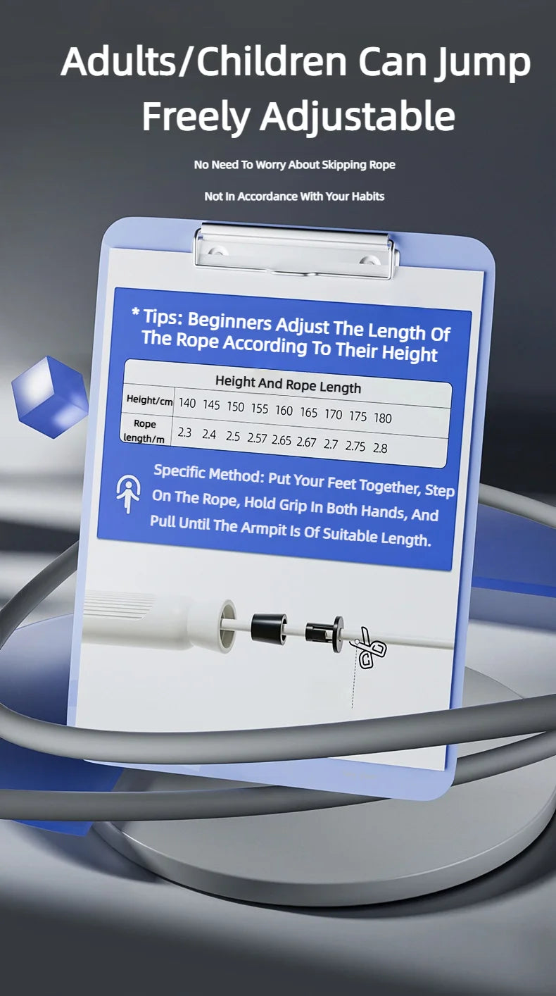 Reguliuojama šokinėjimo virvė, skirta greito praleidimo pratimams svorio metimui, kūno rengybai moterims, vyrams ir vaikams, ilgio plieniniams lynams su guoliais.